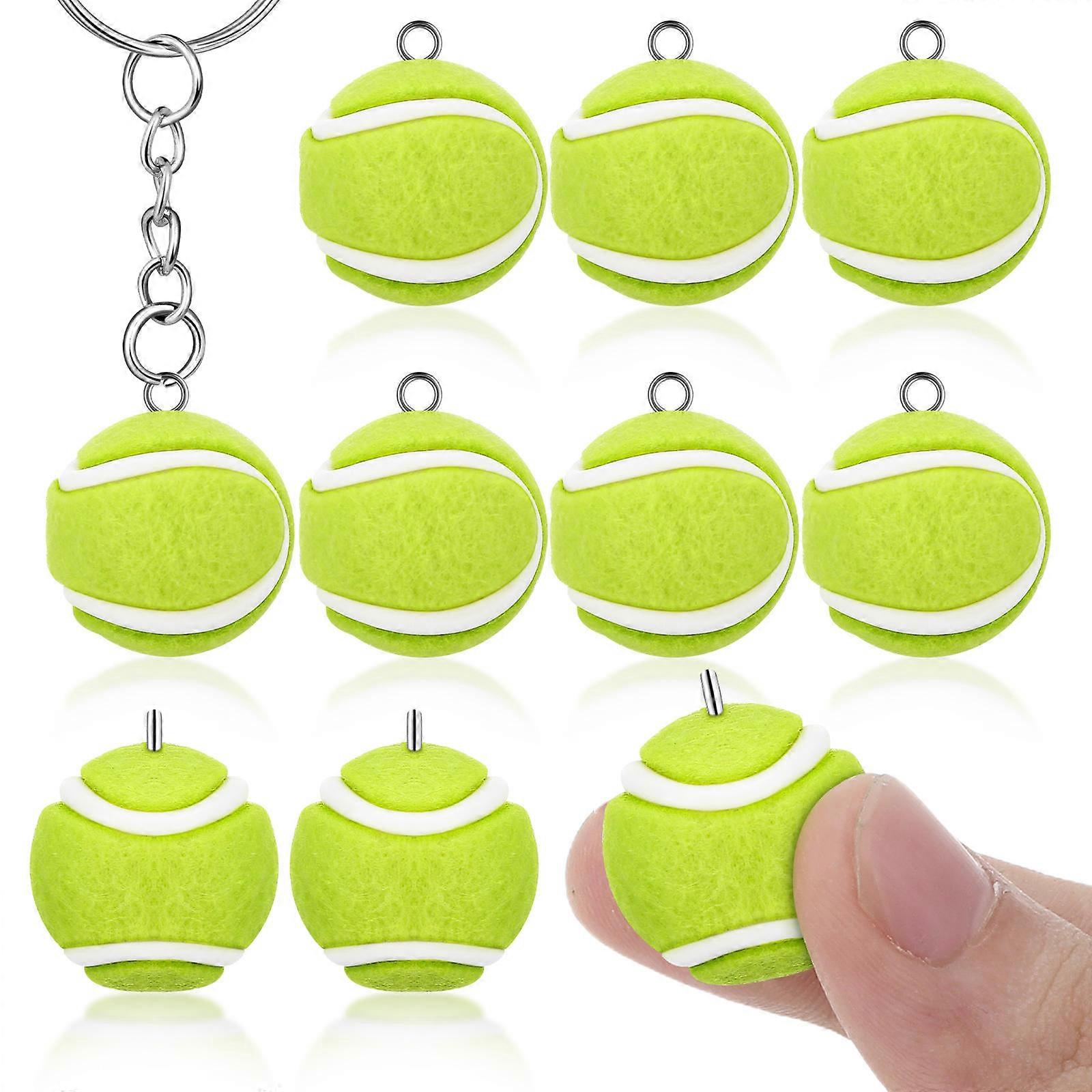 Add a sporty flair to your handmade jewelry with these tennis ball charms. Their detailed design and vibrant color make them an eye-catching addition to any accessory. Ideal for crafting keychains, bracelets, and necklaces, these pendants are suitable for sports enthusiasts and jewelry makers looking to create one-of-a-kind pieces. Features -Color:Green -Material:Flocking - Size: 2.30X1.90X1.90cm/0.90X0.75X0.75in -Stylish and trendy: these mini tennis ball pendants are designed to showcase your unique fashion sense -suitable for diy: ideal for diy enthusiasts, these pendants can be used to create unique accessories -Portable and handy: small and lightweight, these pendants are easy to carry and display your style on the go -Reliable and durable: constructed from sturdy materials, these pendants are built to last and resist damage -Versatile crafting: suitable for making keychains, bag charms, earrings, hairbands, and other craft projects Package list: 10 x mini tennis ball charms
