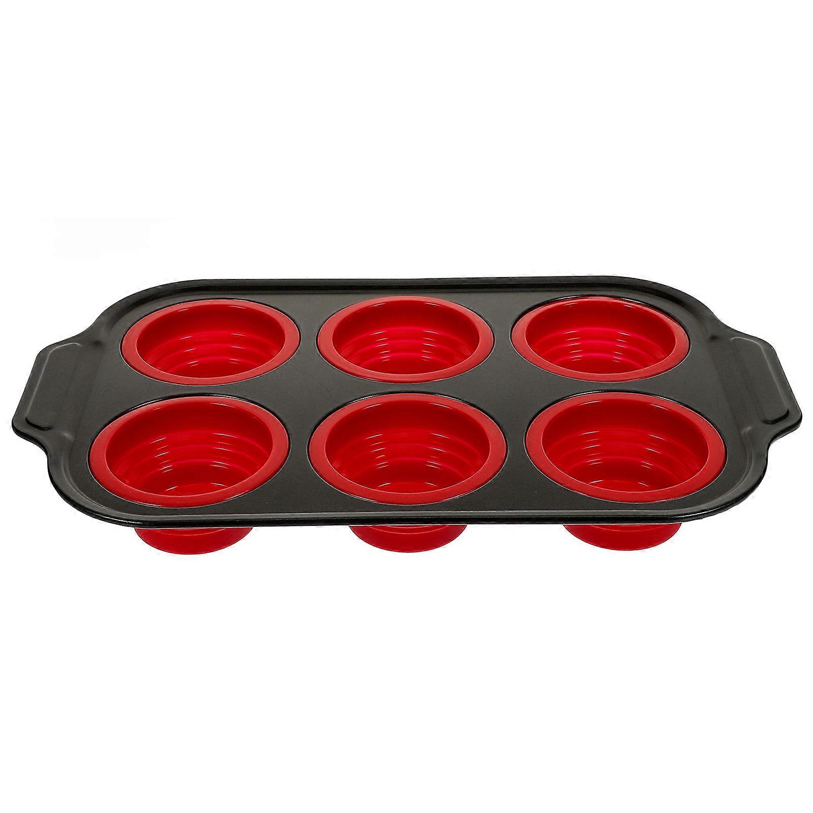 Non-Stick Silicone Muffin Pan Baking Tool For Kitchen Use 31.00X18.60X4.00CM Red 6-Cups Design 1Set