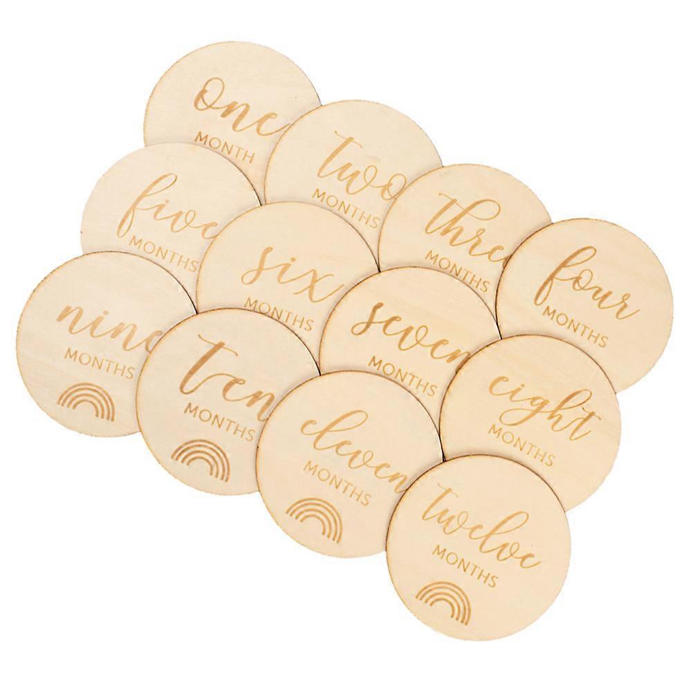 Wood Baby Monthly Cards Growth Recording Cards for Photography 12Pcs