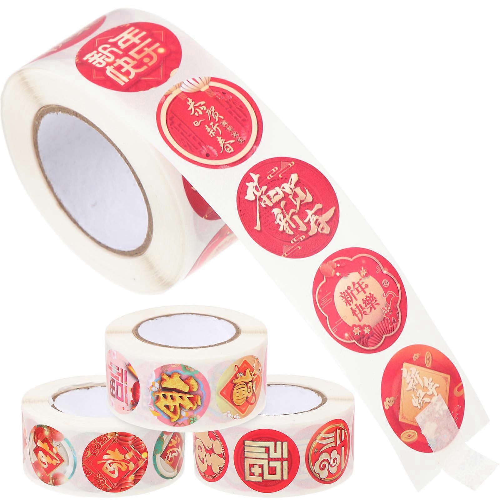 Chinese New Year Stickers 4 Rolls for Red Envelope Sealing and Gift Decoration