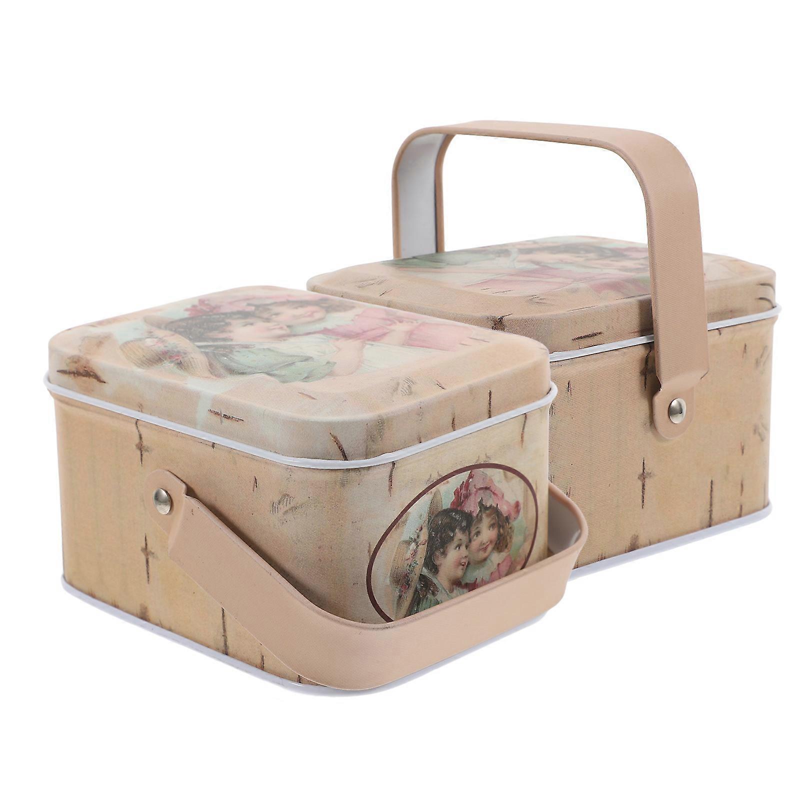 Tinplate Cookies Storage Box Box for Storage 2Pcs Convenient Handle