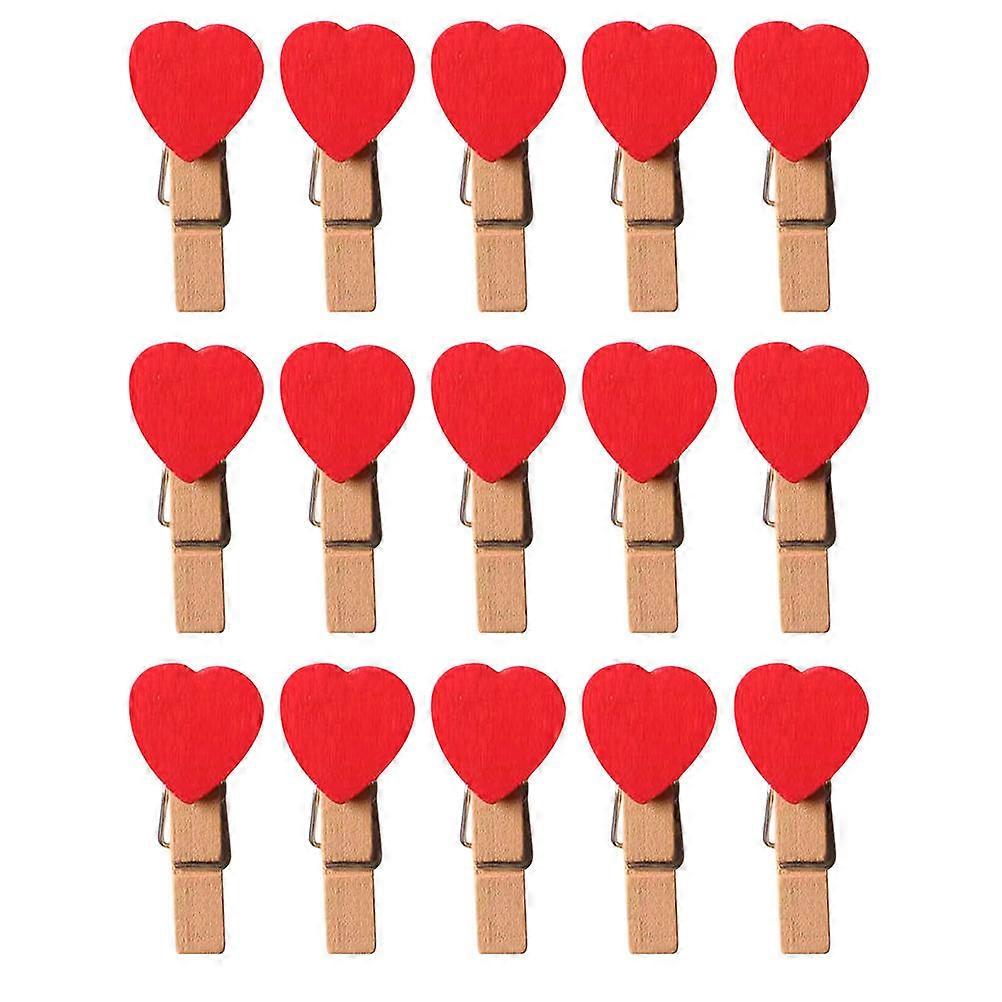 Wooden Heart-Shaped Clip for Decorative Photo Use 50Pcs Red
