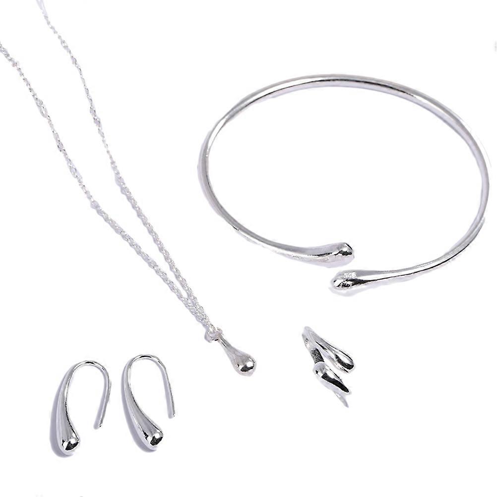 Bridal Earrings Teardrop Bangle Necklace Earrings Ring Set Anti-Rust Wedding 4Pcs