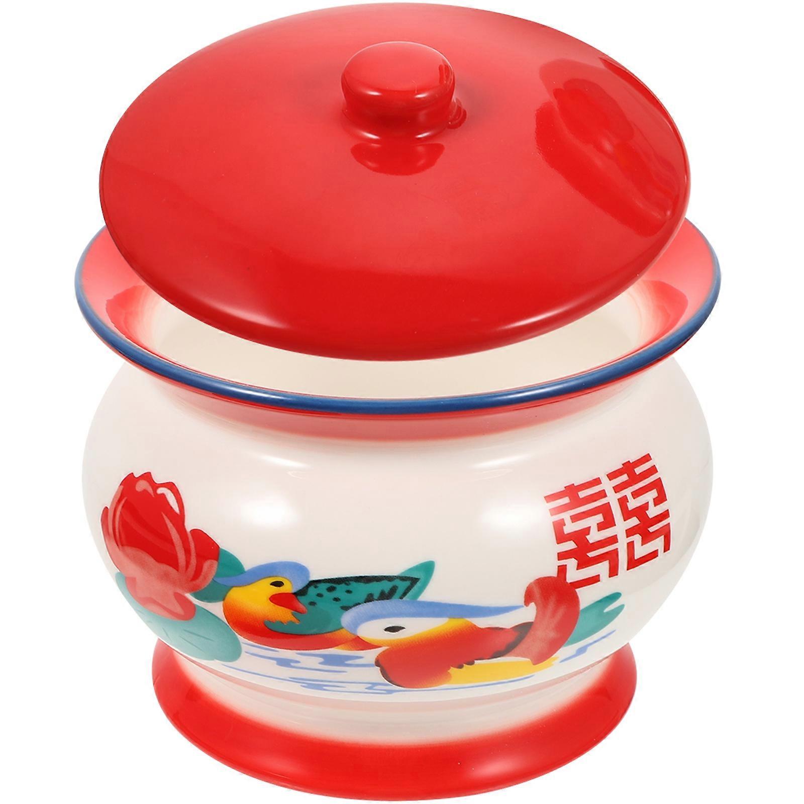 Portable Food Bowl Ceramic Soup Bowl for Kitchen Use Red