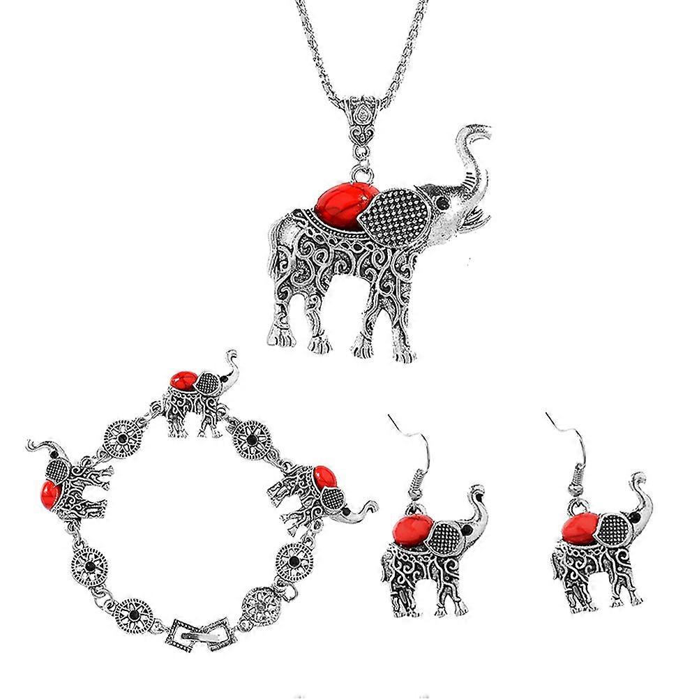 Bohemian Jewelry Set Including Necklace Bracelet And Earrings Designed For Women Ideal For Festival Events In Eye Catching Red 1 Set