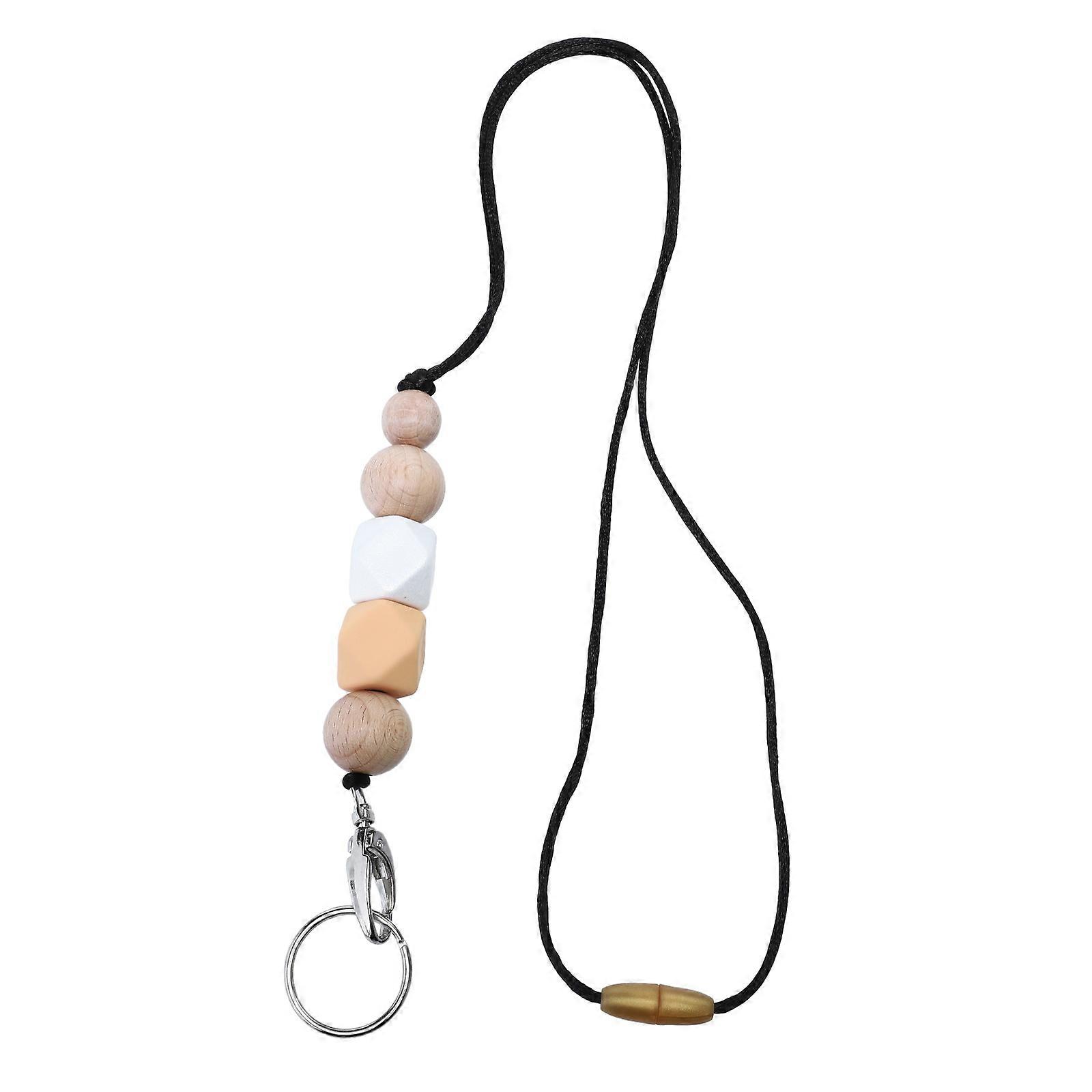 Name Tag Necklace Wooden Beads Lanyard Id Cards Holder For Office Workers School 80x12 5cm Loss Prevention 1Pcs