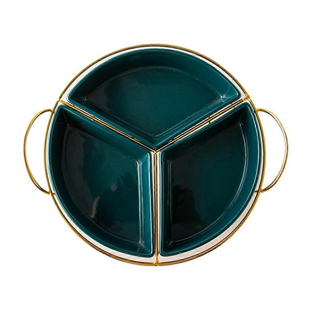 Multi-Purpose Fruit Tray Ceramic Storage Plate with Rack Three-Grid Green