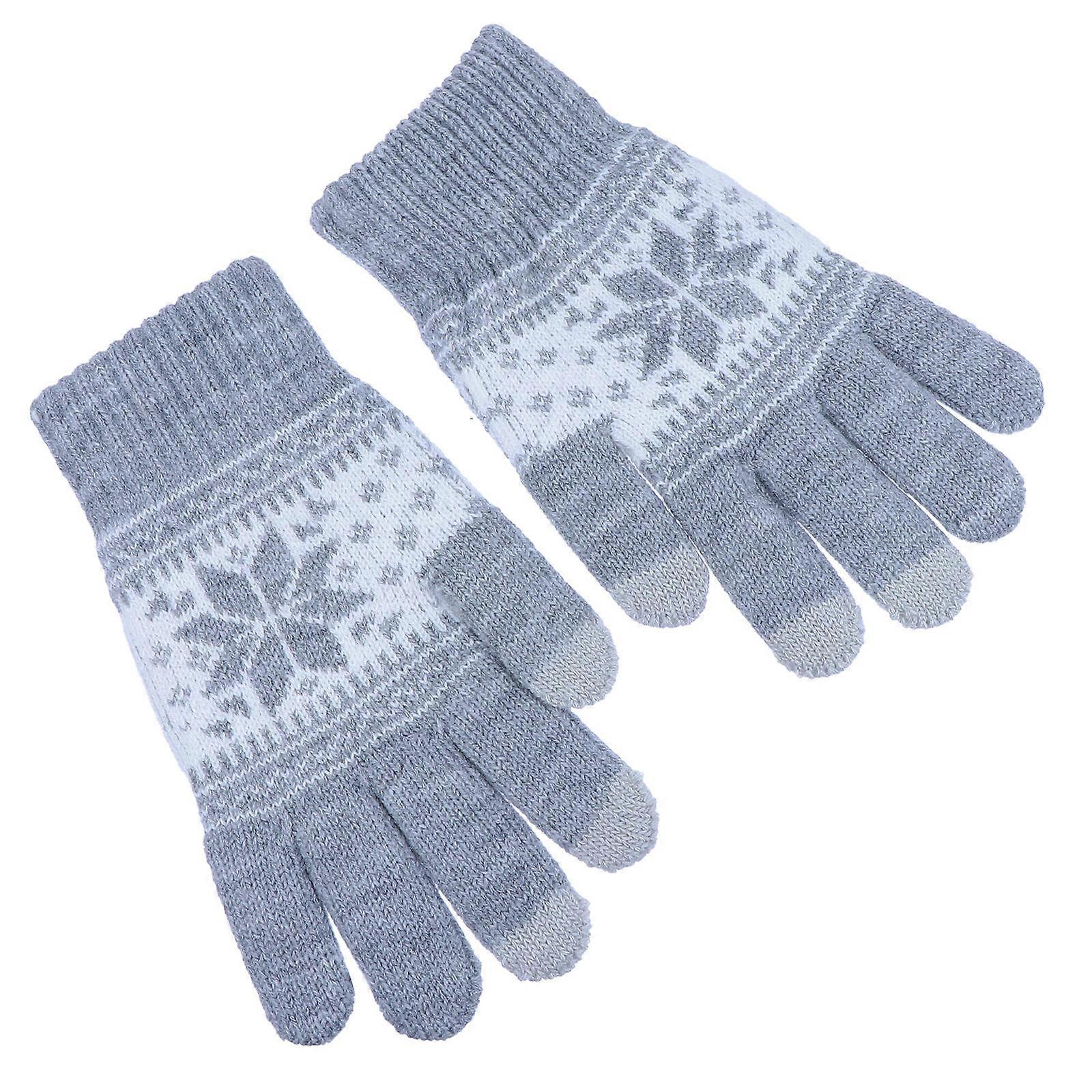 Winter Touch Screen Gloves Wool Knitted for Wearing 1Pair Outdoor Windproof Grey Gloves
