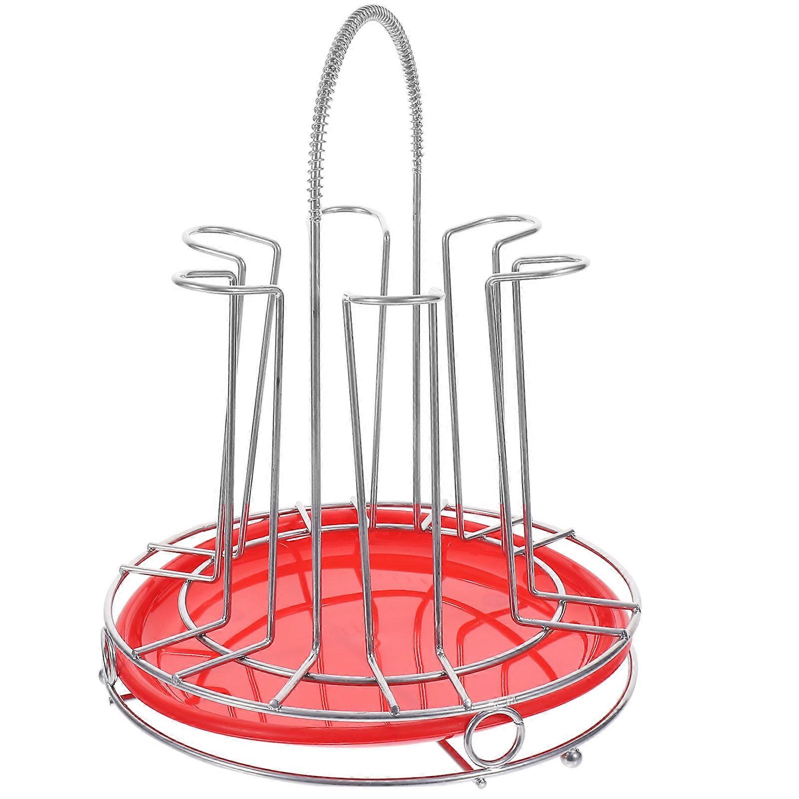Mug Shelf Alloy Six Cup Holder for Storage with Tray Silver Kitchen Use