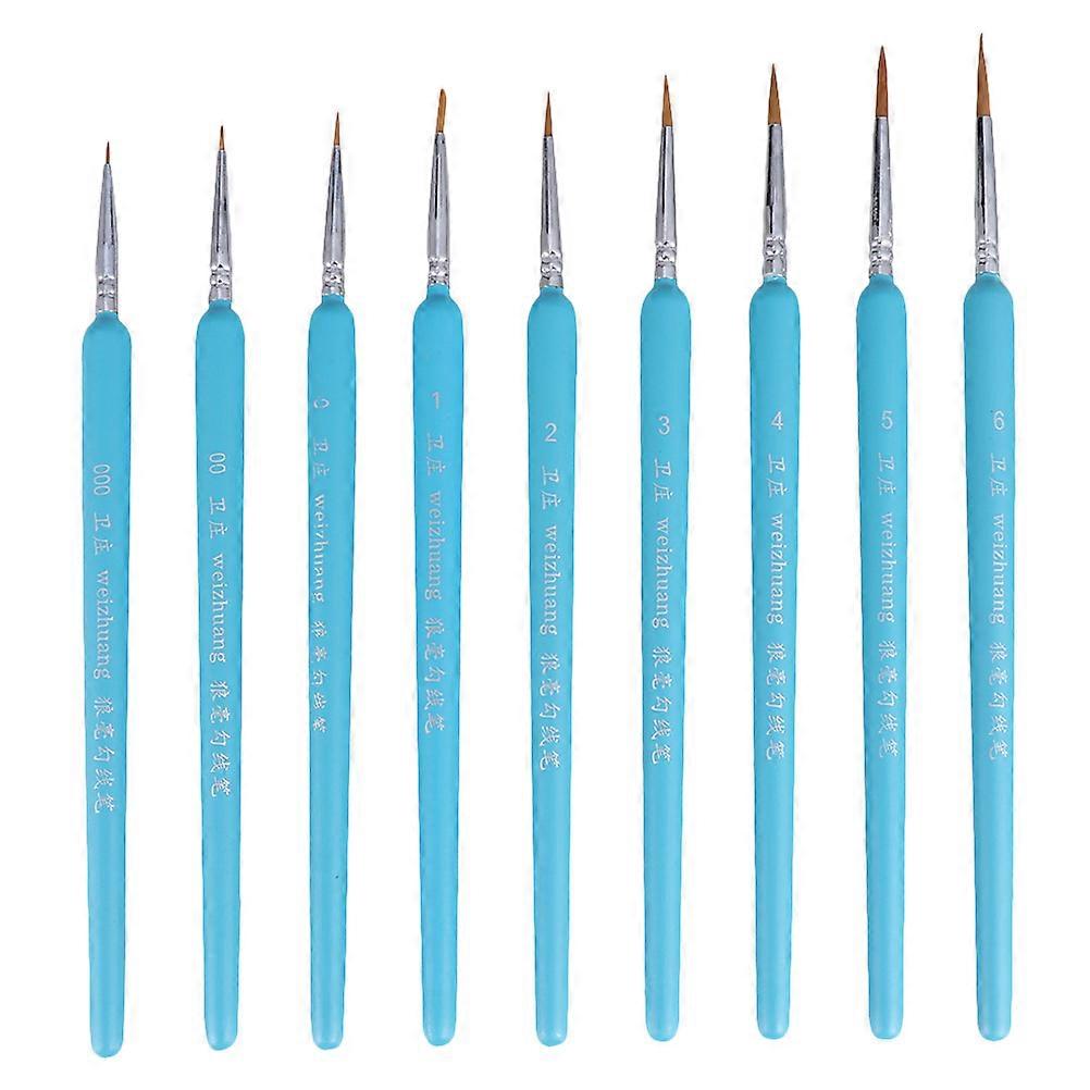 Fine Detailing Paint Brush Set Professional Artists Travel Various Kinds Of Painting 9Pack Sky-Blue