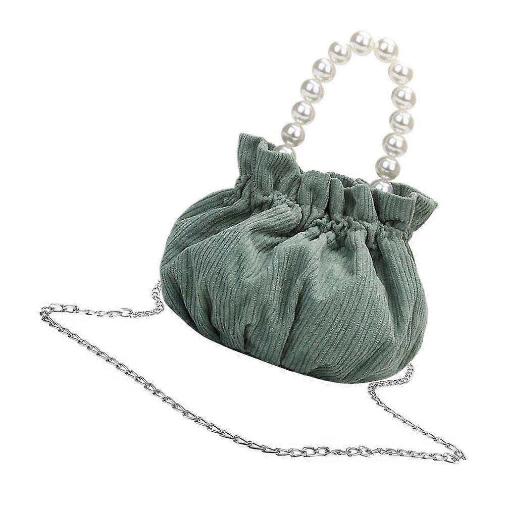 Small Handbags Women Crossbody Bag Pearl Design Casual Style Summer Fashion Rectangular Dark Green Corduroy Storage 1Set