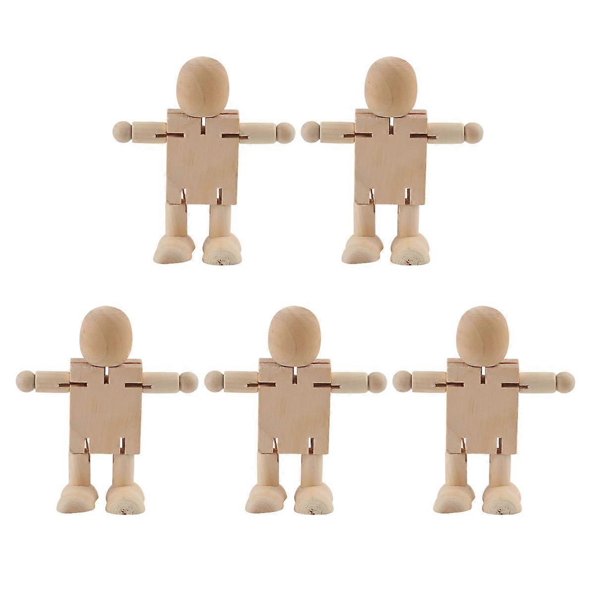 DIY Unfinished Wooden Robot Educational Craft Toys 5Pcs Pack