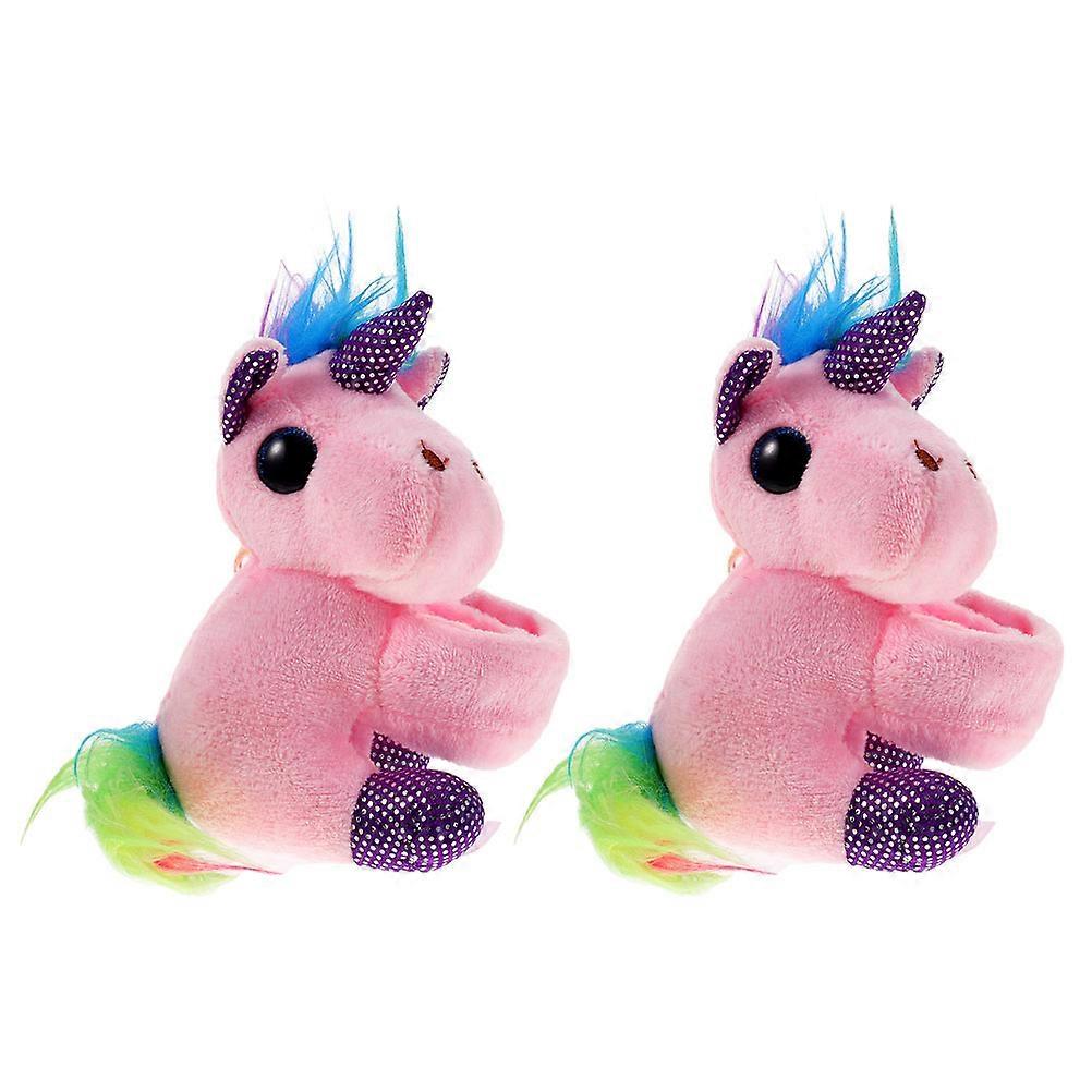 Funny Kids Slap Bracelets Unicorn Slap Wrist Bands Kids Parties Pink Plush Material Wearable 2Pcs