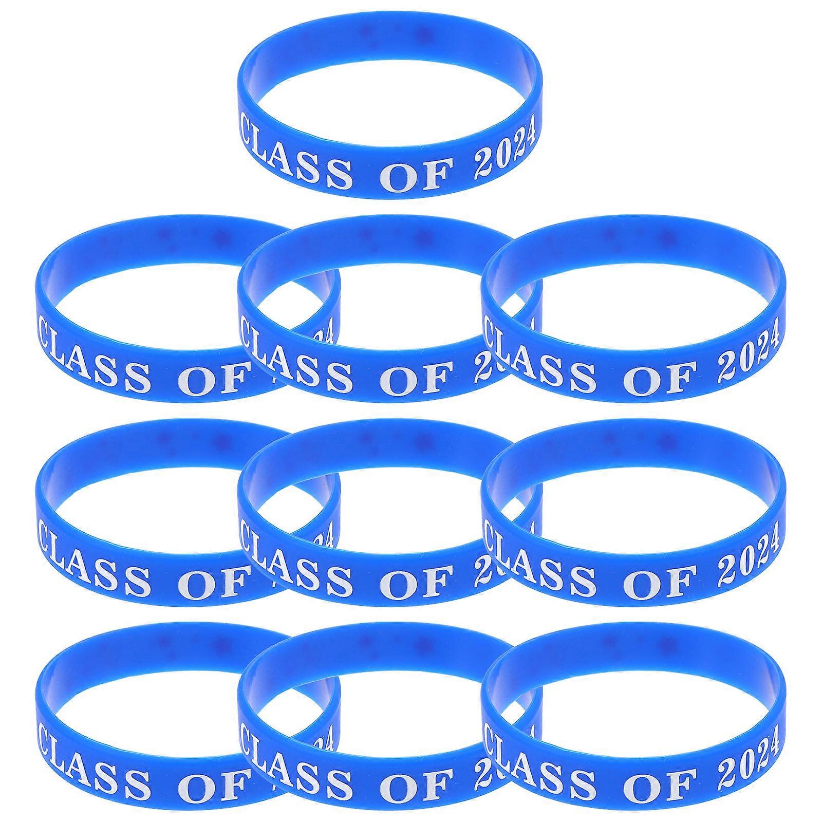 Blue Silicone Graduation Wristband Bracelet for Decoration 10Pcs Pack