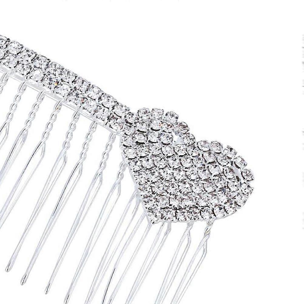 Bridal Hair Comb Alloy Rhinestone Heart Design Comb for Decoration 2Pcs