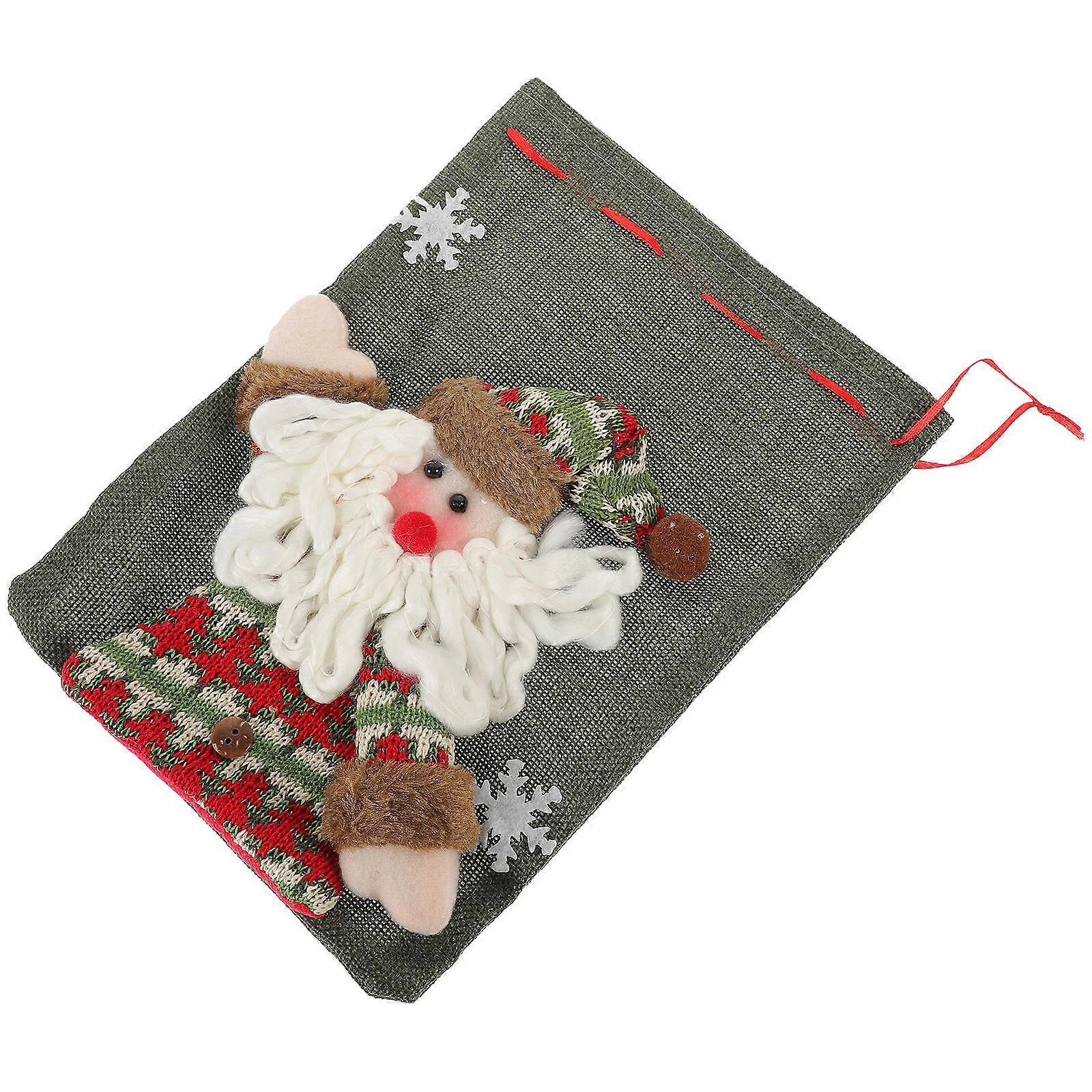 Festival Gift Holder Candy Bag for Storage 1Pcs Olive Green Santa Claus Patterned