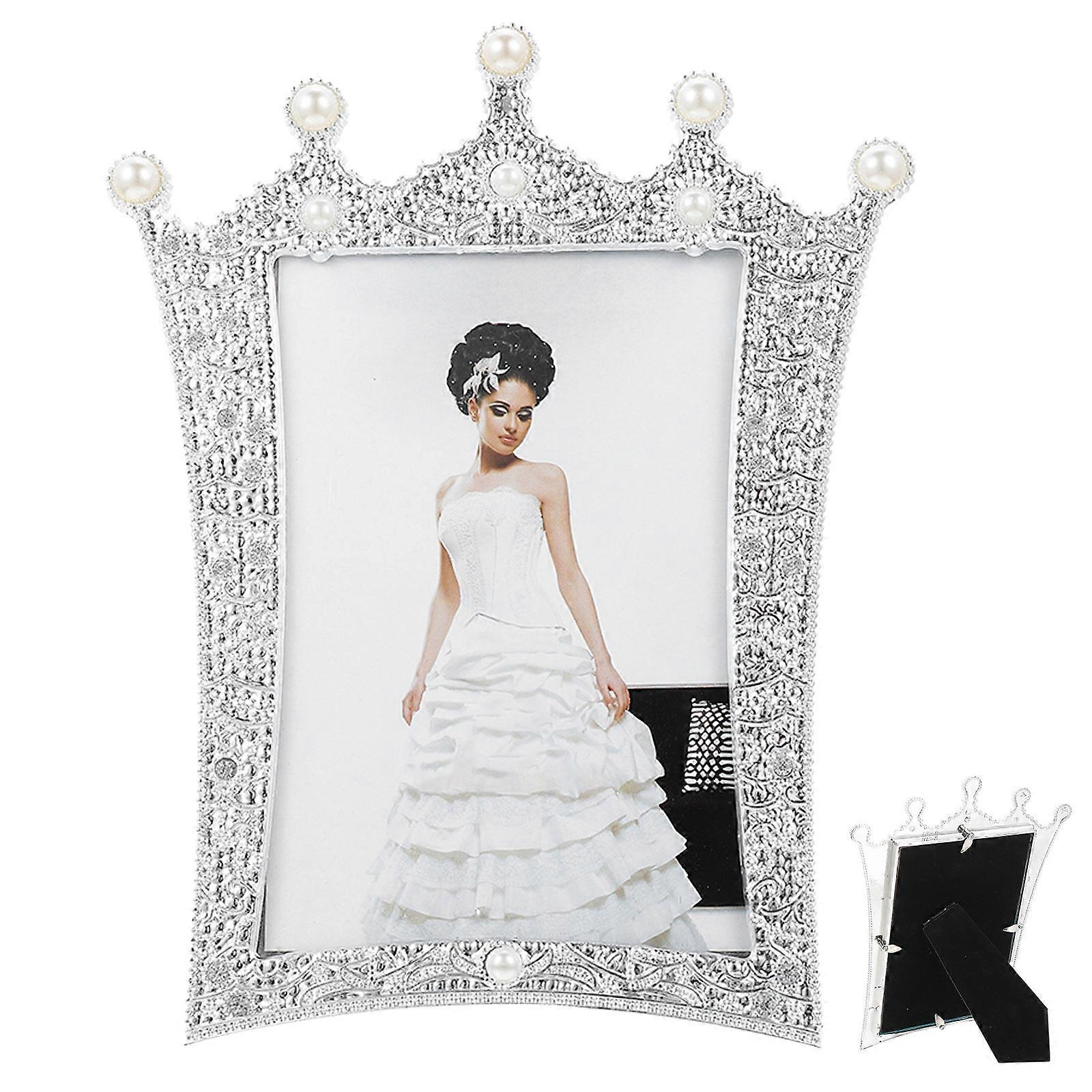 Tabletop Photo Holder Crown Style Wedding Photos Home Decoration Plastic Glass 7.9×6.3×0.6in Gift 1Pcs