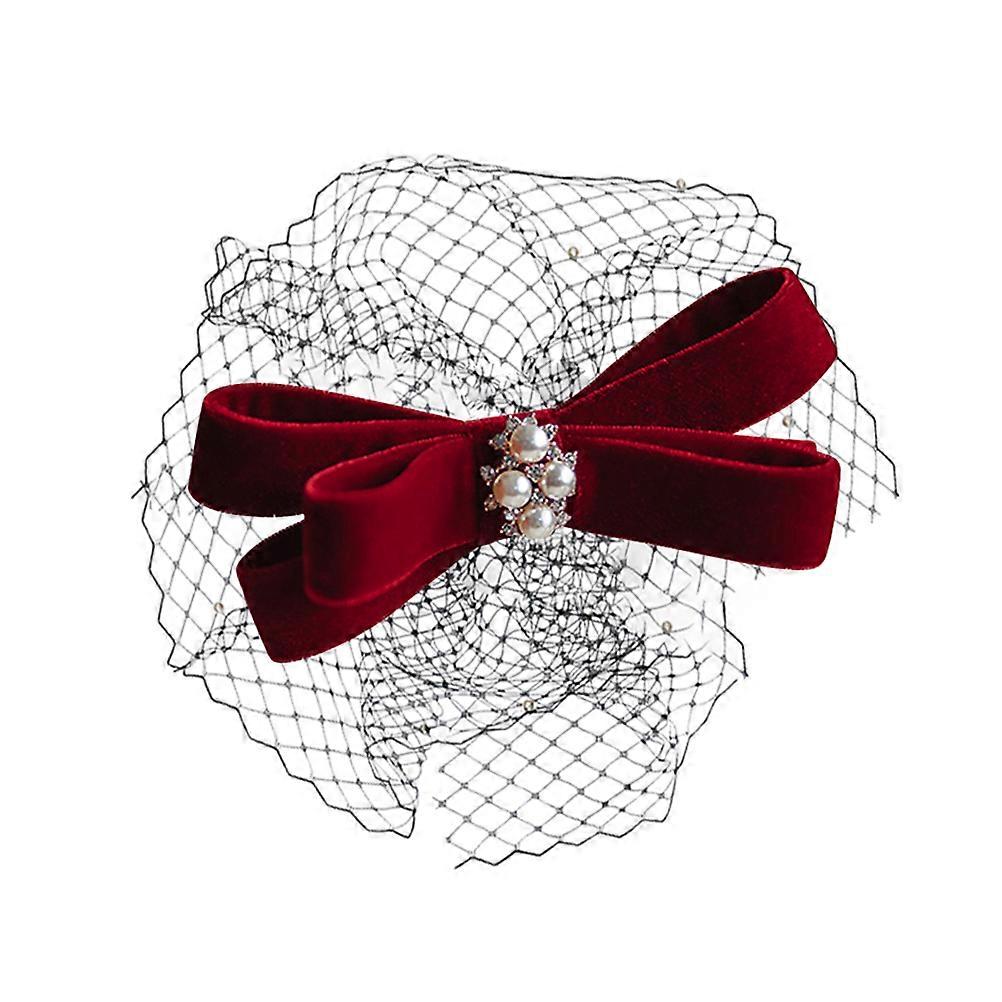 Wedding Hair Accessories Chic Veil Bridal Headpiece Hair Holding Red Bow Shape 1Pack