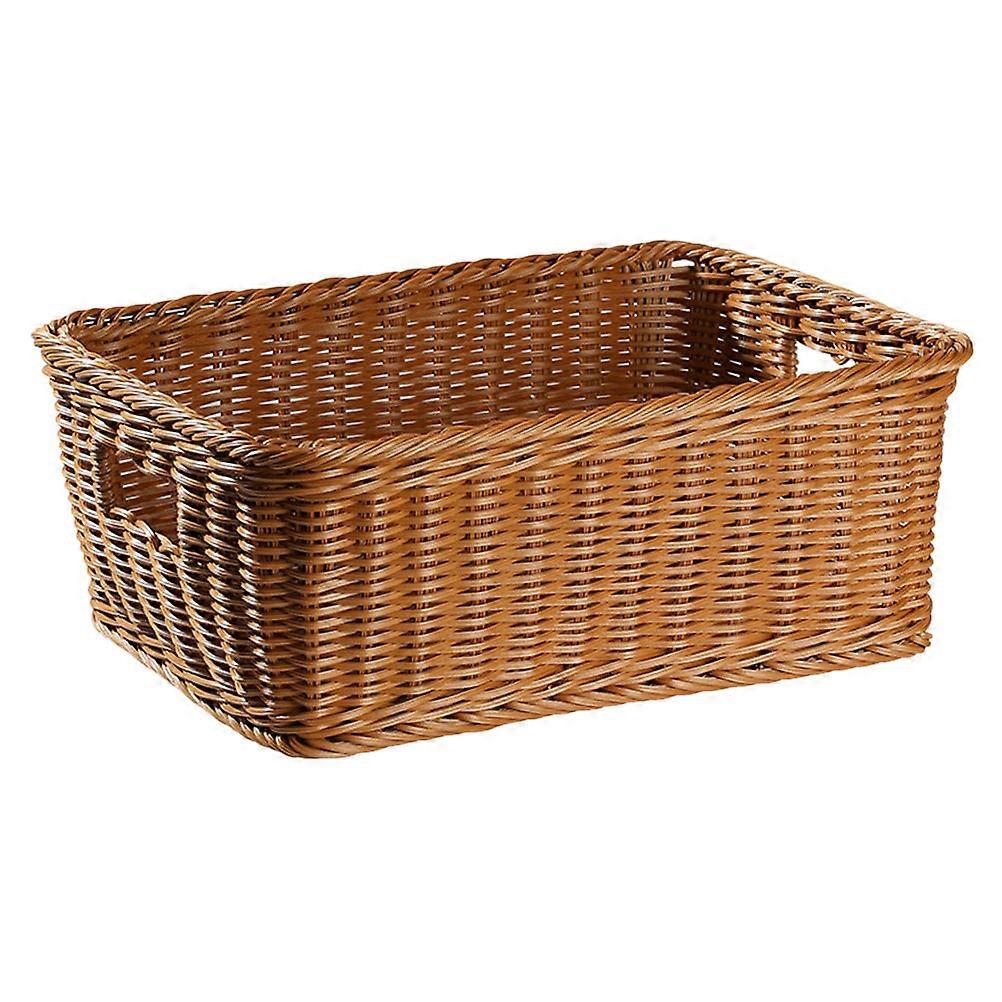 The woven basket is made of stable material and has a beautiful appearance. It is and can be used for a long time. The basket is suitable for storing vegetables, books, files, and snacks. The woven design gives it a rustic and creative look. Features -Color:Light Brown -Material:Imitation rattan plastic -Size:40.50X28.00X15.00cm/15.92X11.00X5.89in -This woven basket is made of reliable material, not easy to break, for use. -Modern and simple in style, the woven basket is very suitable for home and restaurant use. -It also can be very suitable for picnic, home storage basket, home decorations. -Easily match your interior decor and bring some natural beauty to any interior space. -The woven basket is ideal for holding your fruits, snacks, sundries and other kitchen and household items. Package list: 1 x woven basket