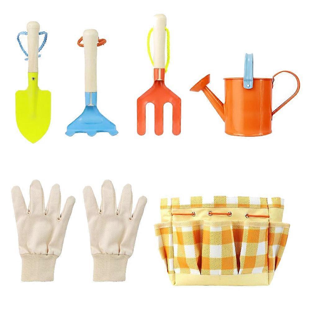 Awesome gardening tools set will encourage children to cultivate . This item is well made of for durable and practical use. It is a colored, practical and educational tool set that provides kids with all the they need to learn of gardening. Light weight but useful tools kit. Feature - Color: Assorted. - Material: Metal, cotton cloth, wood. - Size: Approx. 21.5 x 6.5 x 2.5cm/8.46x2.56x0.98 inch. - Made of for durable and practical use. - Set includes watering kettle, gloves, , hoeing rake, teeth and carry tote bag. - Tools made with wooden handles and quality . - Rounded edges for safety. - Great gift for kids to cultivate . Package list: 2 x watering kettle 2 pcs x 1 pair of x gloves 2 x 2 x hoeing rake 2 x rake 2 x carry tote bag