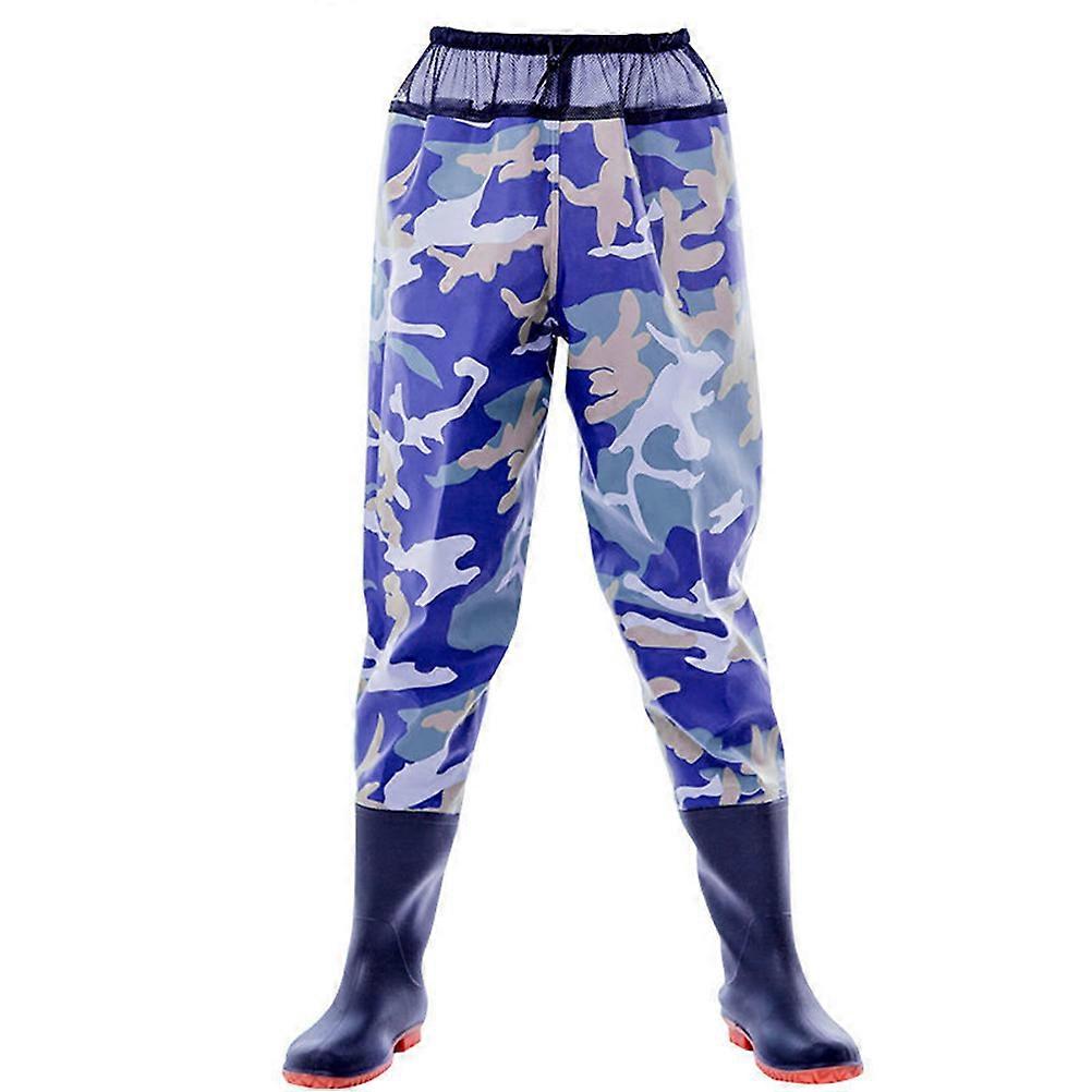 Waterproof Pants Half Body Fishing Pants for Wearing Blue Camouflage 40 Yard