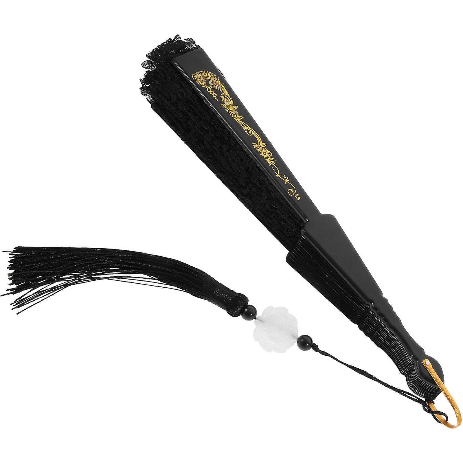 Lace Folding Fan Black Handheld Fan with Decorative Tassel