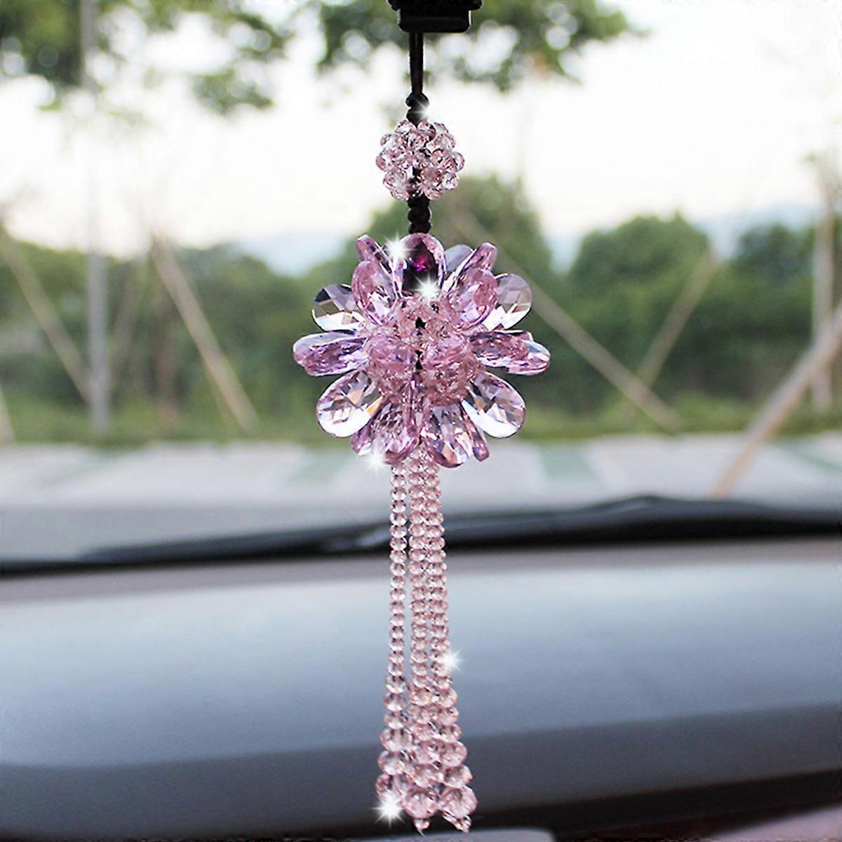Car Crystal Decoration Flower Pendant Charm for Car Pink