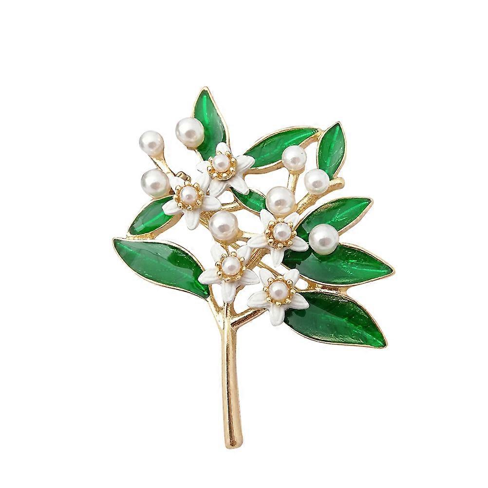 Floral Brooch Pin for Decoration Pearl Lapel Pin Green Alloy