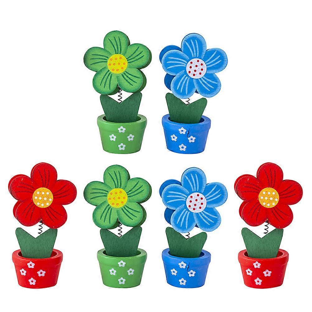 Note Holders Flower Pot Designed Wooden Memo Clamps for Home 18Pcs