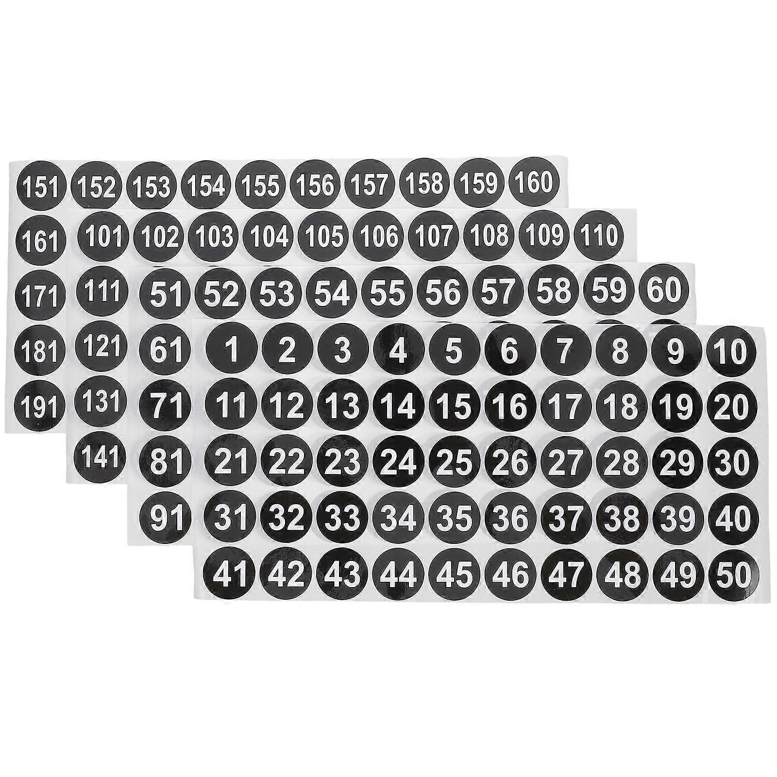 Multi-Use Number Sticker Round Labels for Inventory 4 Sheets Black