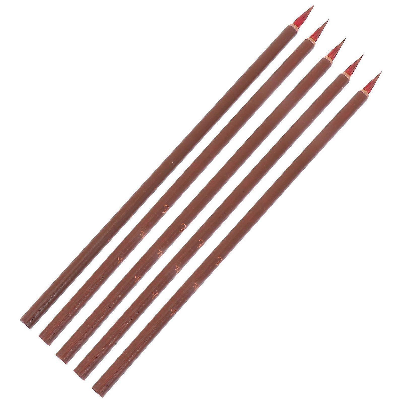 Chinese Calligraphy Brush Pens for Painting Use 5Pcs Brown Wooden Brushes