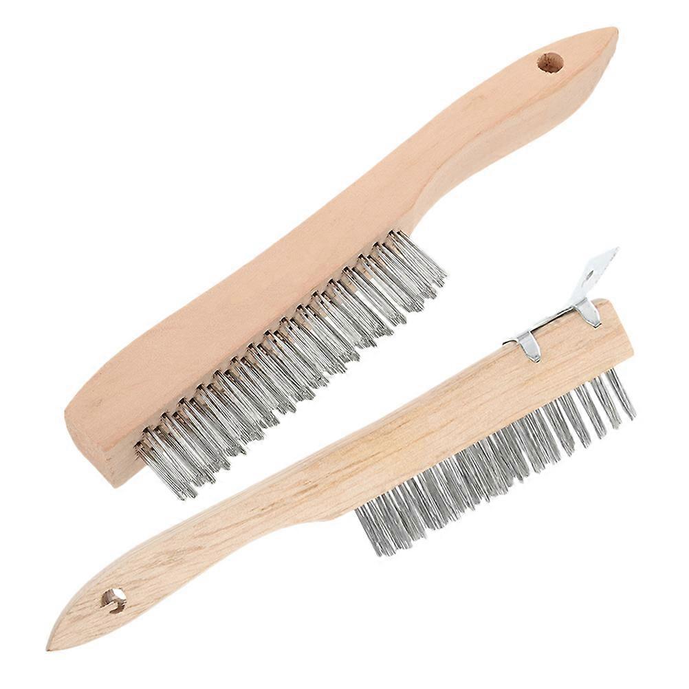 This wire brush is a practical tool for maintaining and restoring metal surfaces. The sturdy wooden handle makes a secure grip, while the steel bristles quickly clean rust, paint, and debris. suit for DIY projects or tasks, it meets the needs of users seeking performance and sturdy construction. Features -Color:Multi -Material:Steel wire -Size:25.50X5.00X2.60cm/10.02X1.97X1.02in -Size:25.00X5.00X4.00cm/9.82X1.97X1.57in -Rust and paint removal: easy remove rust and old paint, restoring the metal surface's shine -steel wire construction: made from steel, this brush is designed for durability and sturdy use in tasks -Wide range of applications: suitable for various industrial cleaning needs, such as automotive repairs and marine maintenance, making versatility -Ergonomic design: the wooden handle is ergonomically designed for a comfortable grip, allowing for extended use without discomfort -Safe to use: smoothly finished edges make safe handling, minimizing the risk of injury while using the brush for cleaning tasks Package list: 4 x wire brush
