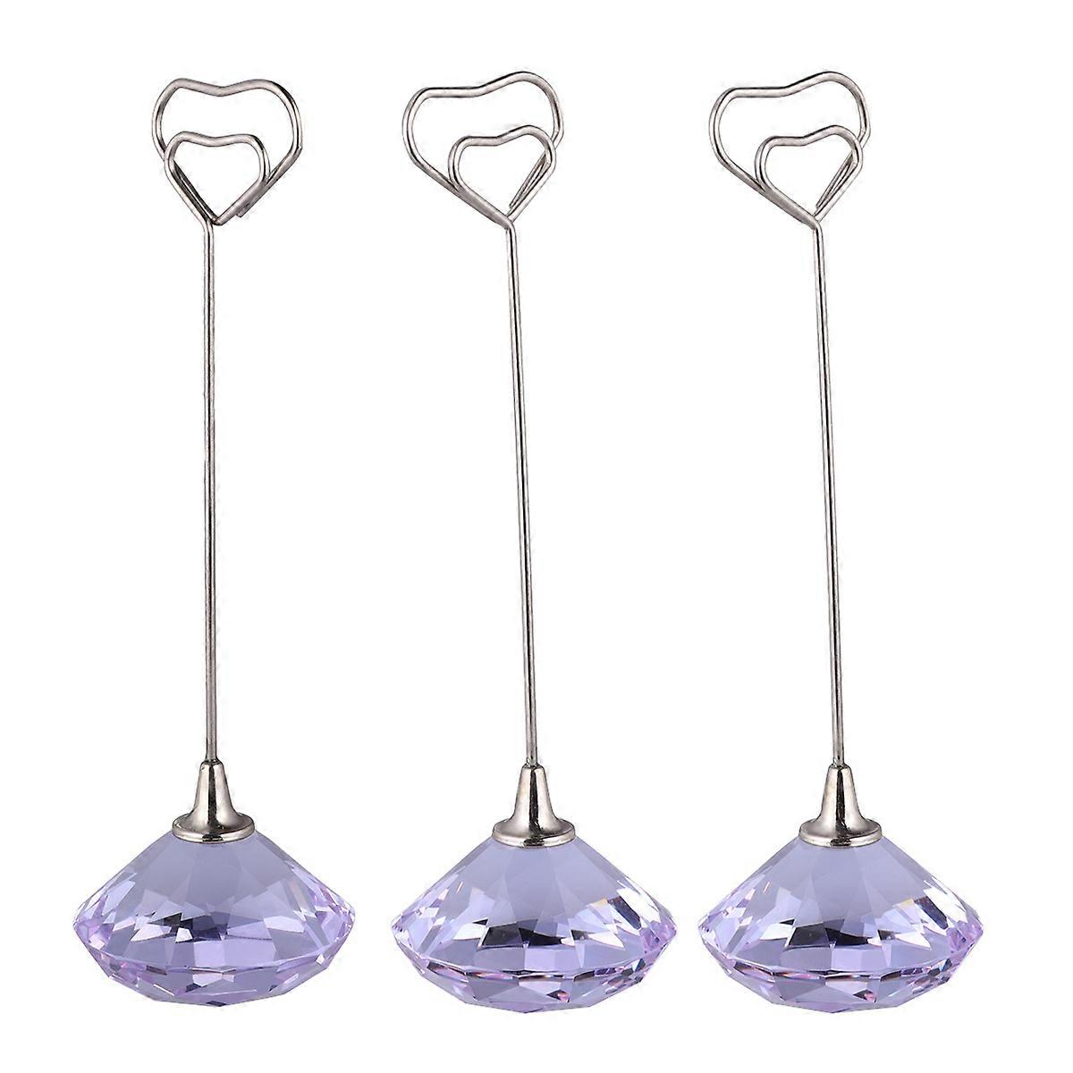 Table Number Holders Heart Iron Wire Crystal Note Clip for Decor 6Pcs Purple