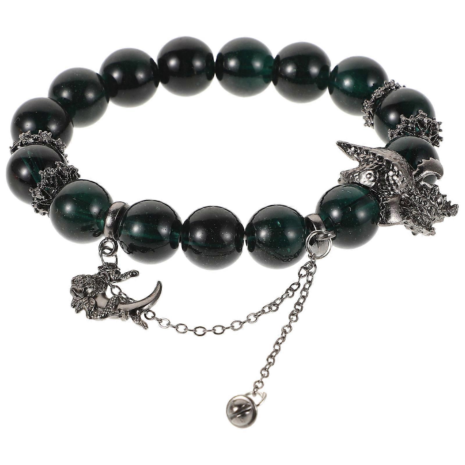 Dark Green Beaded Bracelet with Moon Snake and Dragon Charms for Daily Wear