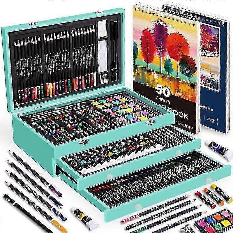 Deluxe 175-piece Professional Art Set With Artist-grade Acrylics, Colored Pencils, Wooden Case