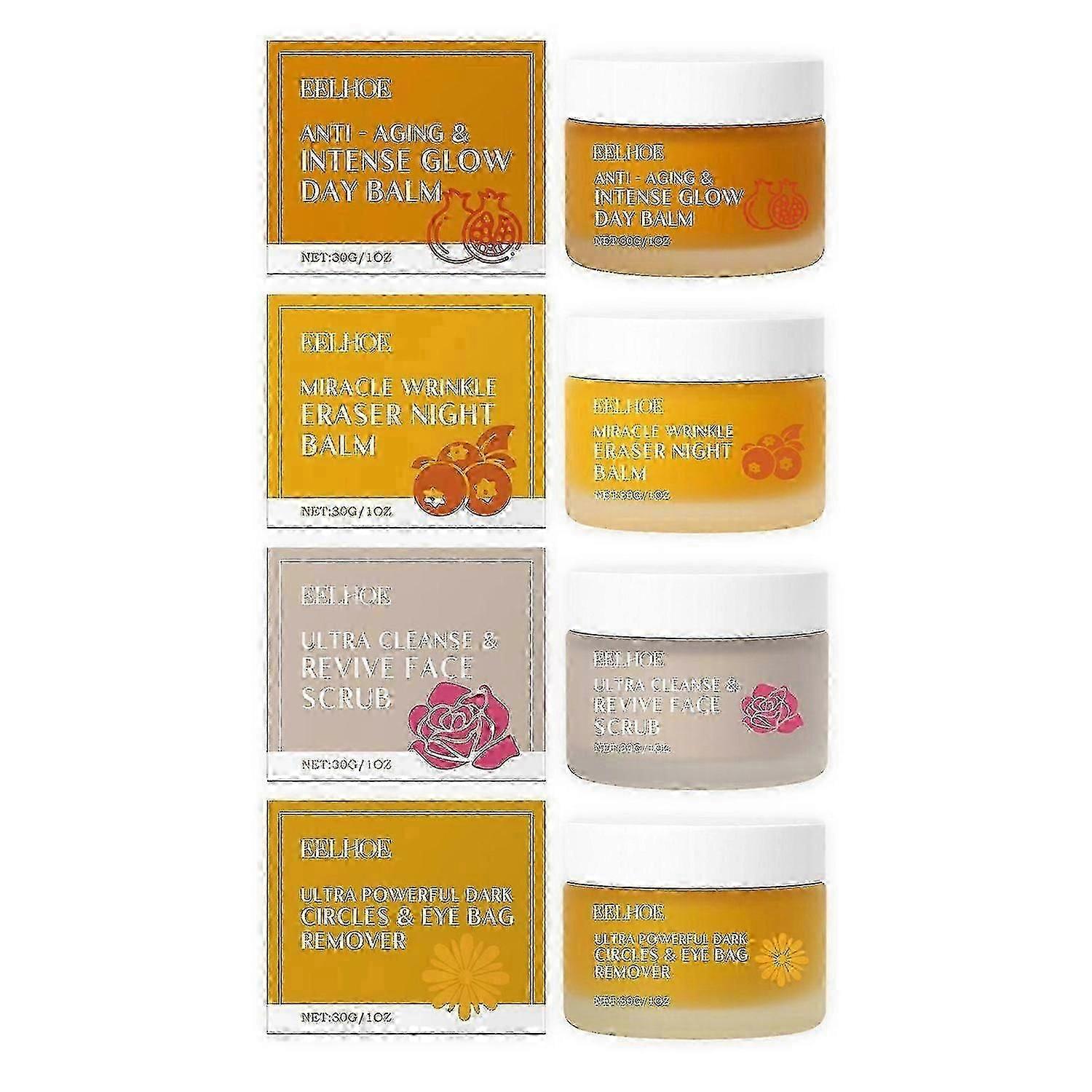 Organic Mature Women Skin Care Set - Rose Revive Face Scrub, Anti-aging & Intense Glow Day Balm, Anti-wrinkle Night Balm