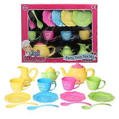CHARMING PASTEL TEA PARTY DESIGN:Beautiful pastel colours including pink, yellow, blue and green make this children’s tea set perfect for imaginative tea parties. Designed with cute heart detailing, this set encourages creative role play and social interaction. Ideal for play kitchens, birthday parties, afternoon tea games and everyday pretend fun.SAFE, LIGHTWEIGHT & CHILD-FRIENDLY MATERIAL:Made from durable, lightweight plastic with smooth edges for safe handling. Specially designed for small hands, the cups, teapot and accessories are easy to grip and use. Suitable for children aged 3 years and over, offering safe and enjoyable pretend play indoors or outdoors.COMPLETE 15 PIECE SET FOR INTERACTIVE PLAY:Includes teapot with lid, sugar bowl, milk jug, four cups, four saucers and four spoons – everything needed for a full pretend tea party. Encourages sharing, communication and storytelling skills while developing hand-eye coordination and fine motor abilities through interactive role play.PERFECT FOR PARTIES, PLAYDATES & GIFTING:An ideal gift for birthdays, Christmas, special occasions or reward treats. Great for playdates, nursery settings and family gatherings, helping children build confidence and social skills. The colourful design makes it a delightful present for both girls and boys who love pretend kitchen play.EASY TO STORE, CLEAN & CARRY:Compact and lightweight design allows easy storage after playtime. Simple to wipe clean and maintain, making it practical for everyday use. The stackable cups and accessories help keep everything organised. A wonderful addition to any child’s toy kitchen collection.