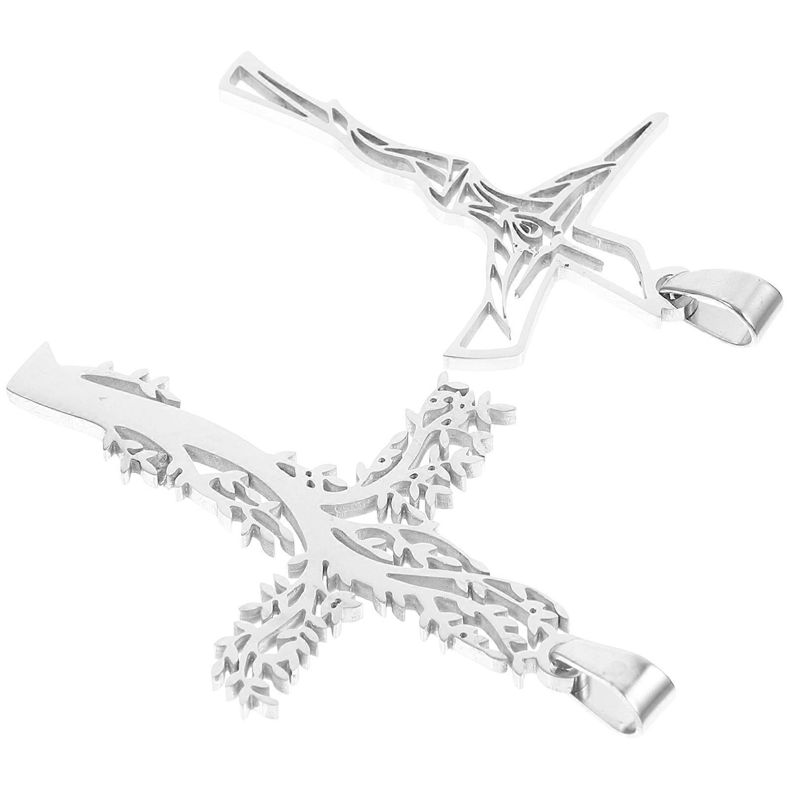 Cross Tree Pendant Silver Metal Religious Decor for Bag 2Pcs