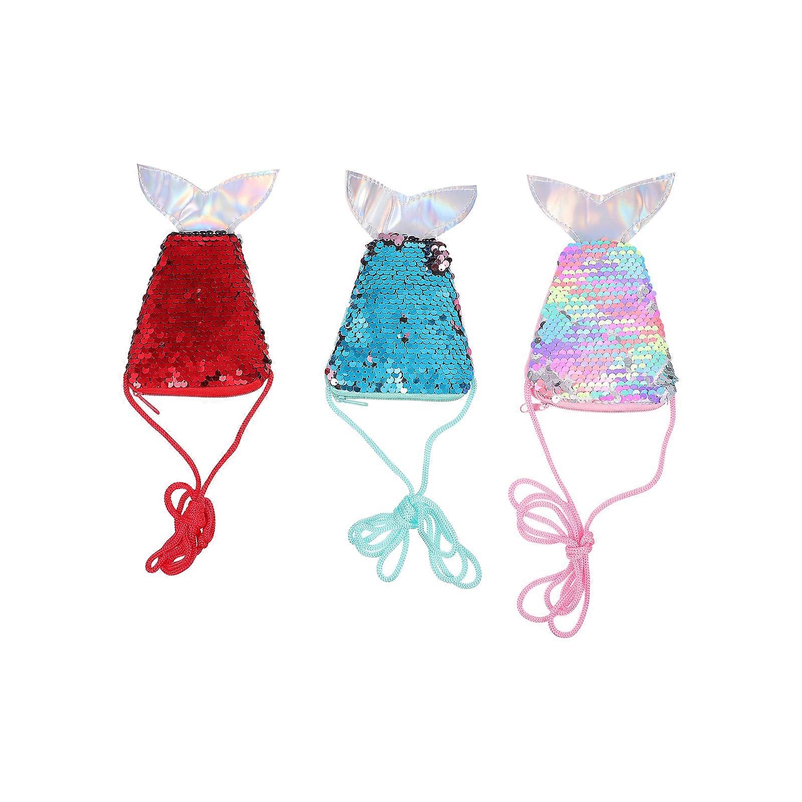 Manufactured with which can be used for a long time. Brilliant colors add charm to it.It can hold various items, such as change, keys, etc. Creative mermaid tail appearance, which looks beautiful and adorable. Designed with a bag strap, it is easy to carry the bag with the strap. Features -Color:Assorted Color -Material: Sequins + fluff -Size: About 14.50X10.00X1.50cm/5.70X3.93X0.59in -Manufactured with which can be used for a long time. -Brilliant colors, comfortable and material, fine touch feeling. -It can hold many items, such as change, keys, etc. -Creative mermaid tail appearance, which looks beautiful and adorable. -Designed with a bag strap, it is easy to carry the bag with the strap. Package list: 3 x bag