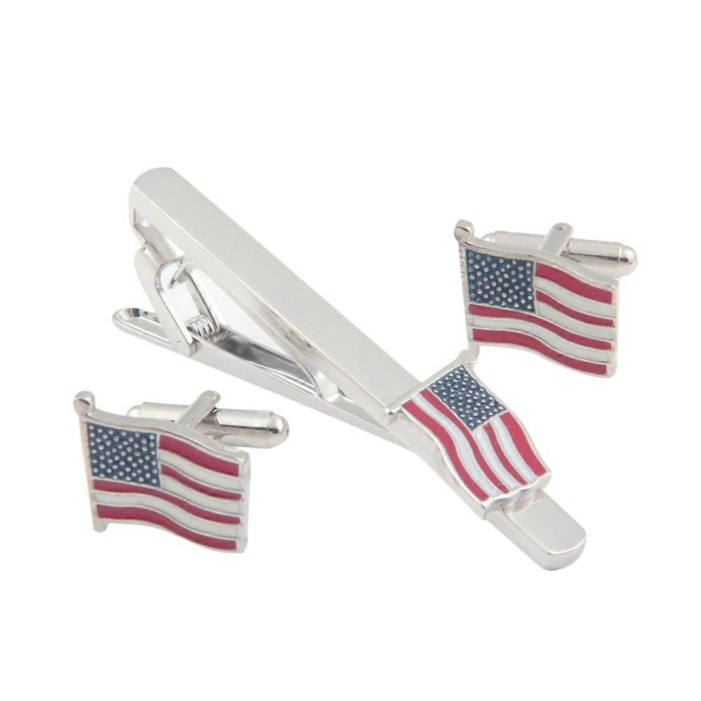 The product is designed as American flag design cufflinks and tie clip set, very chic. Nice color is perfect to make a nice atmosphere on parties or before working. Perfect decoration for clothes. It will be a good choice for you, if you choose it. Feature - ColorAssorted Color - Material: Copper. - Packing Size: About 2x12x8cm. - Made of , and . - products can be a really good decor on your clothes. - A perfect clothes decoration and a lovable gift for all special occasions. - Very easy to match clothes. - Perfect for a birthday gift. Package list: 1 x Pair Sleeve Button 1 x Tie Pin