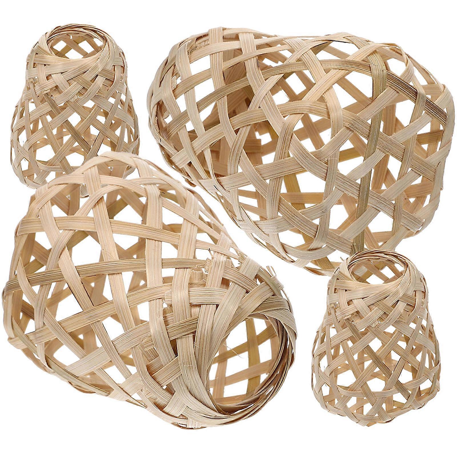 Bamboo Lamp Shade Rustic Lampshade for Pendant Light 4Pcs Khaki Woven Design