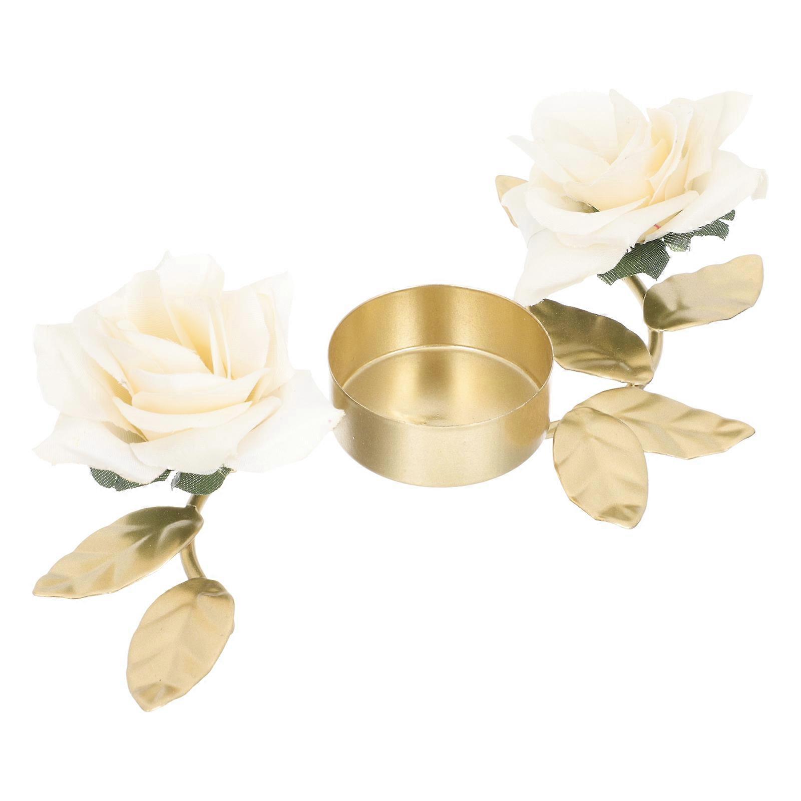 Gold Metal Candle Holder Realistic Rose Flower Candlestick Holder Wedding Decoration