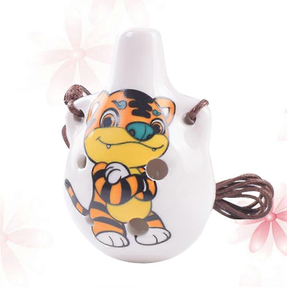 Small Musical Instruments Ocarina Beginner Friendly Desktop Decor Ceramics Tiger Pattern Manual Opening And Tuning 1Set