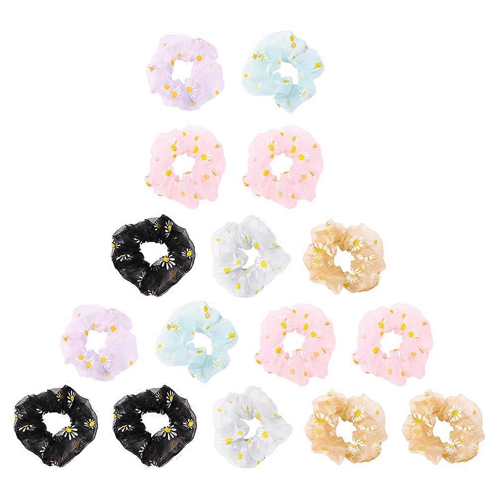 Mesh Candy Color Flower Hair Rings Hair Accessories for Women 15Pcs