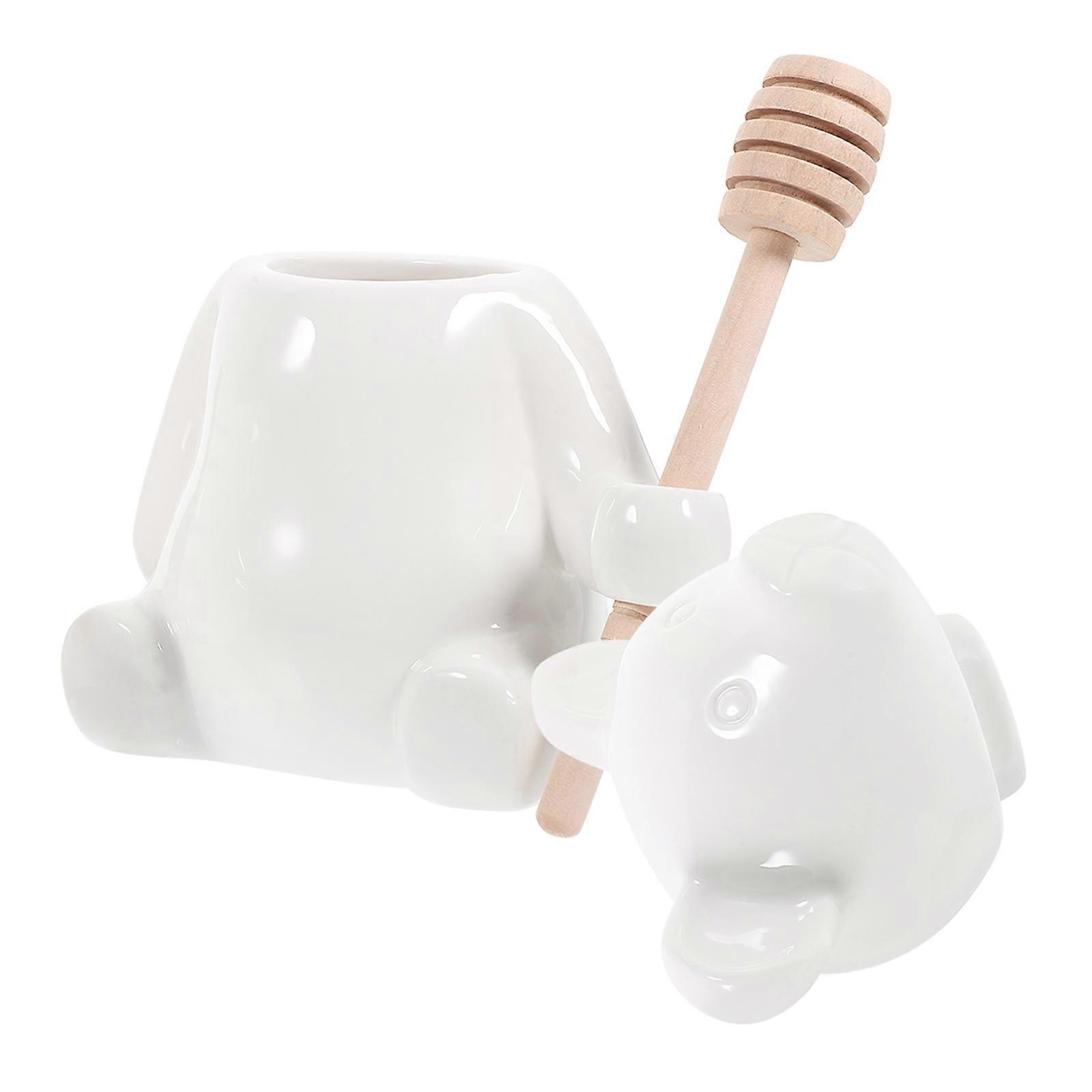 Ceramic Honey Container with Wood Dipper for Honey Dispensing 1Set