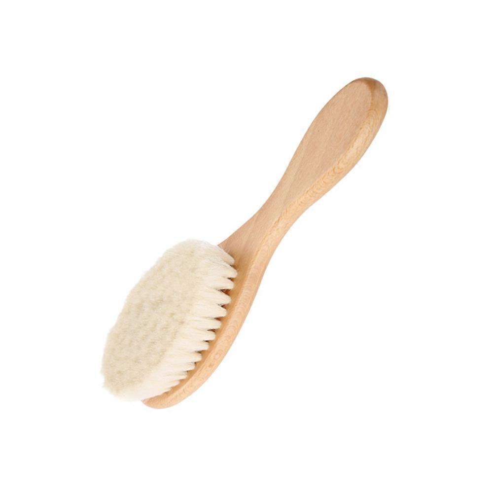 Wool Brush Curved Wood Handle for Beard Care and Kids Shower