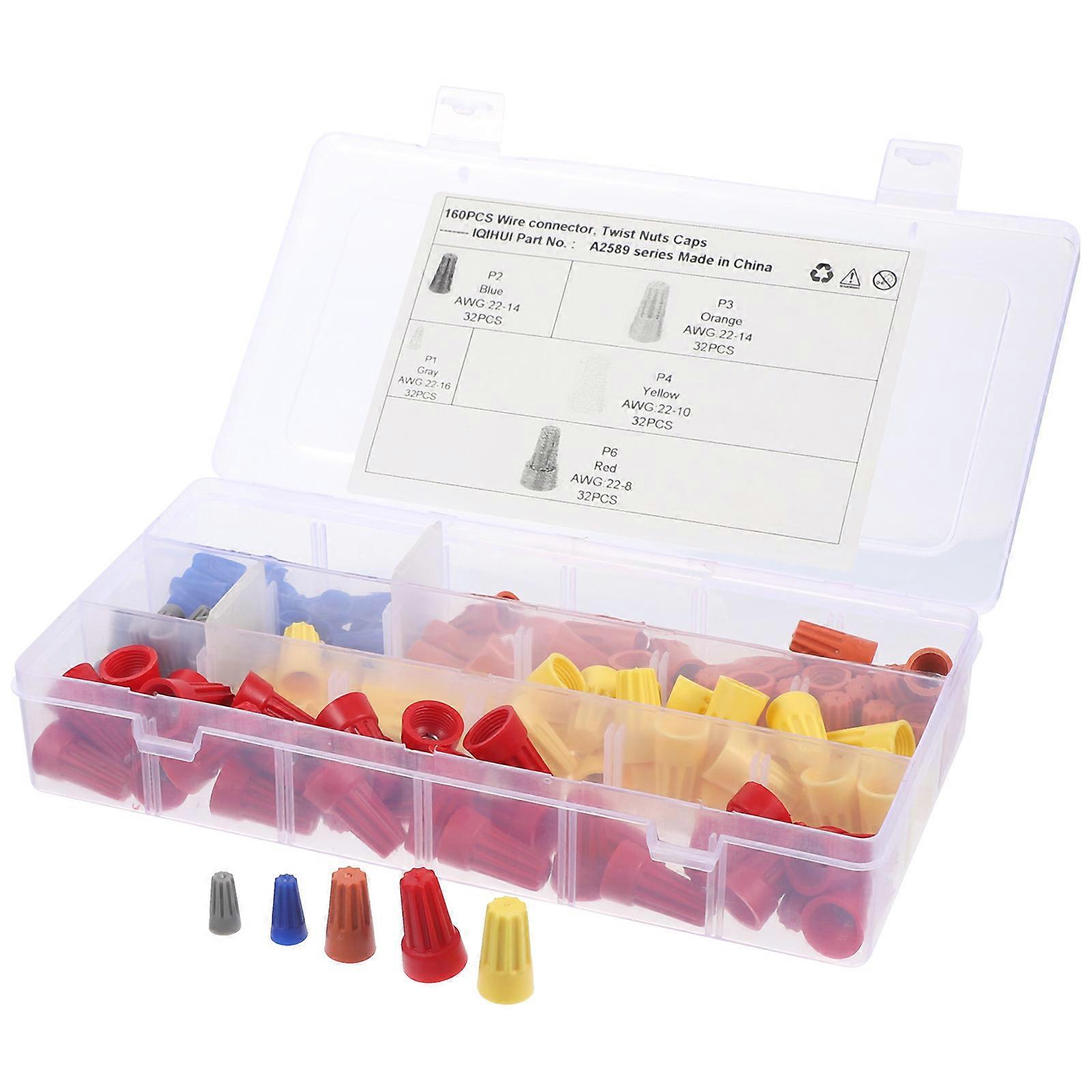 Electrical Splice Connectors Spring Insert Nut Connector for Home Theater Wiring Insulated Pvc Material Waterproof Function 160Pcs