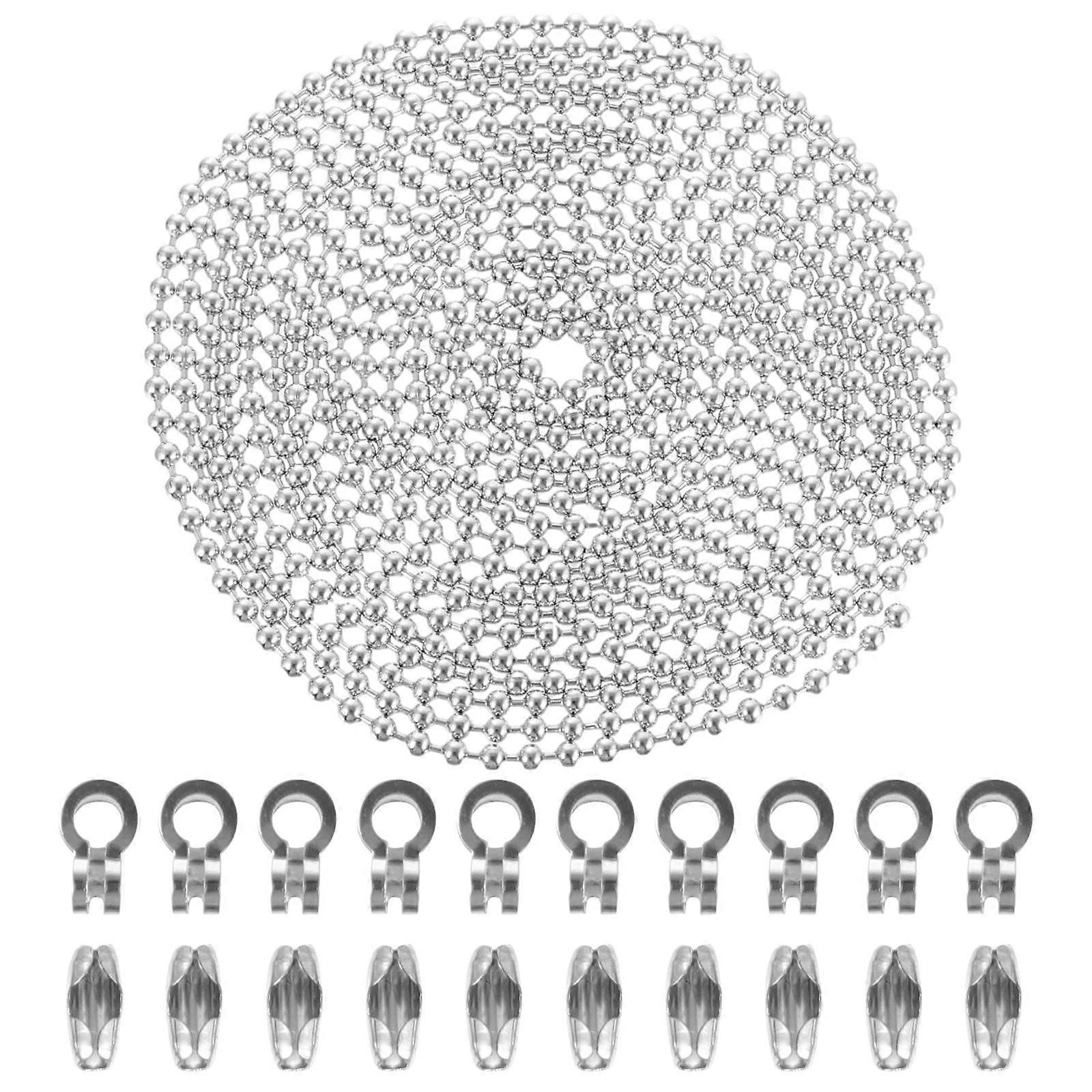 Chain Extension with Connector Beaded Roller Chain Silver 400X0.45CM Cuttable for DIY Projects 1 Set