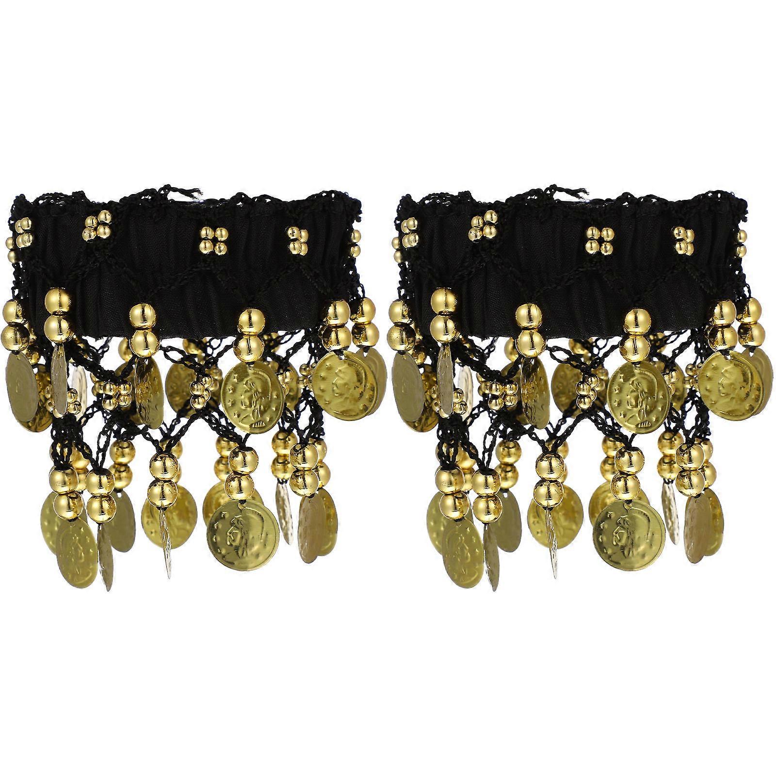 Belly Dancing Accessories 2Pcs Belly Dance Anklet Circular Foot Jewelry Black Chiffon Costume Embellishment Set