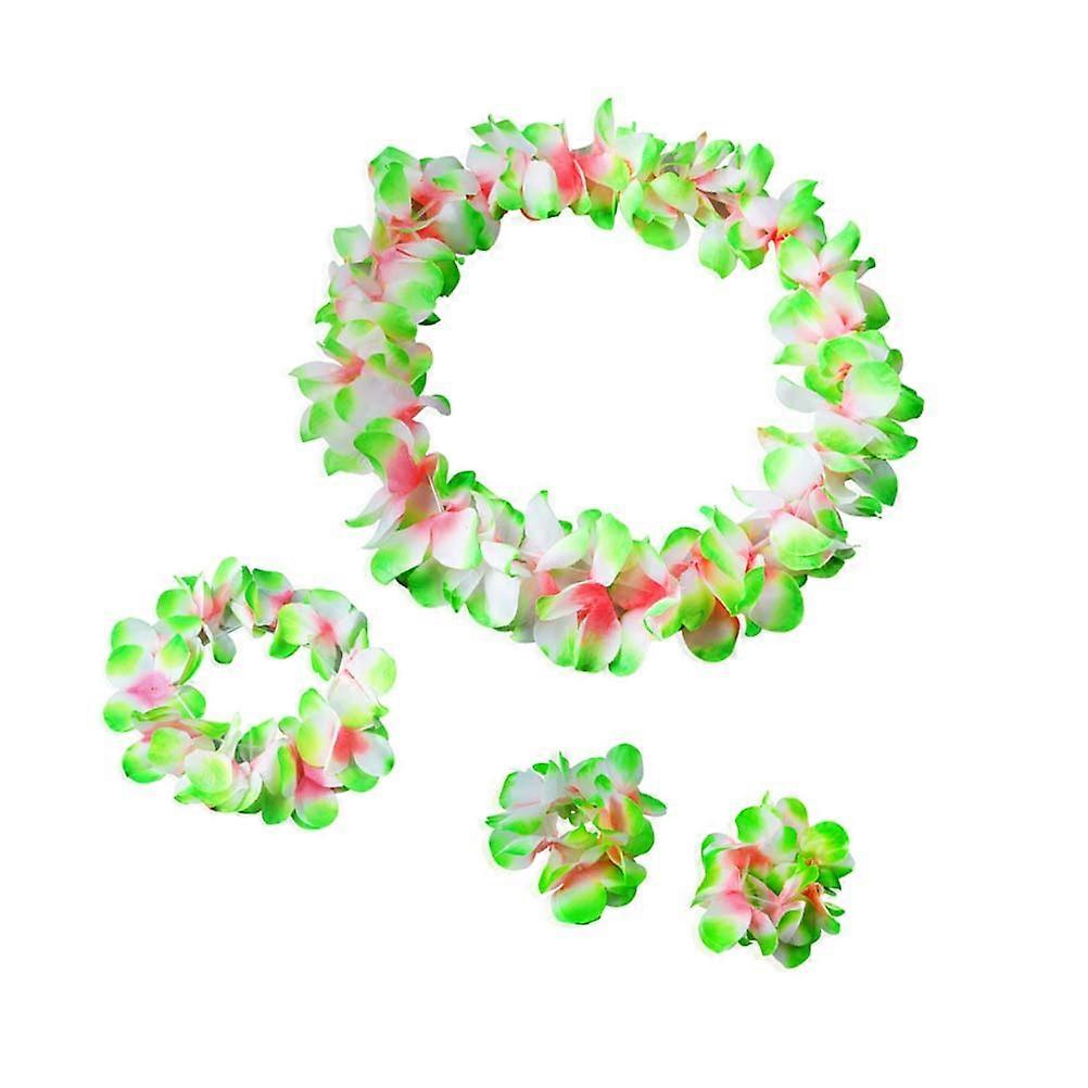Summer Luau Wreath Green Hawaiian Leis Necklace for Hair Decoration 4Pcs Set